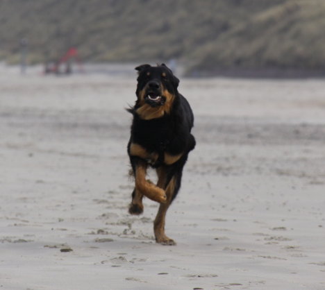 Osco schwimmt gerne - auch im Meer bei Wellengang