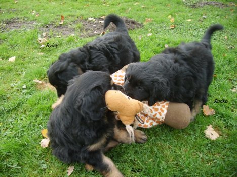 Über Nacht bleibt die Tür zum Garten geschlossen - an diesem Abend war der Blondtrupp wohl noch nicht einverstanden. Nach anfänglichem Protestgejaule haben sie sich so davor gelegt.
